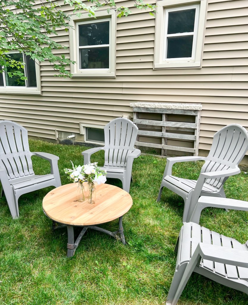 I also built a table top out of cedar to set on an old fire-pit we have to create an additional seating area.