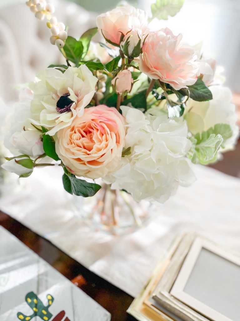 Inside I kept the decor pretty simple, sticking with white and greens. This flower arrangement from Balsam Hill really set the tone for what colors to use.