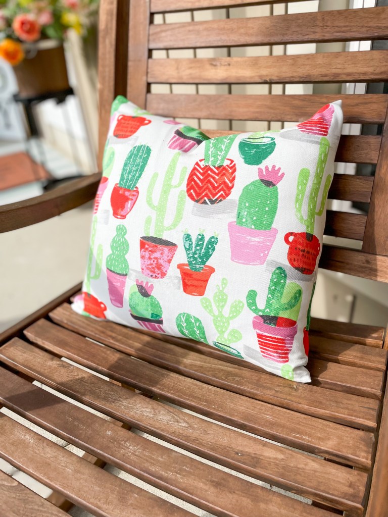 I also made some easy pillow covers with this outdoor fabric I found on clearance at JoAnn’s because I thought it was so cute and tied in with the colors of the party.