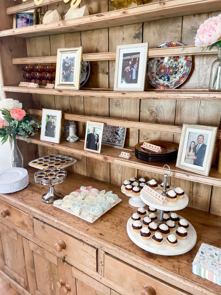 I have to admit the desserts were my favorite part of it all 😍 They were also the most work, but in the end well worth it. I made mini brownies bites (groom’s favorite dessert) and mini red velvet cupcakes (bride’s favorite). I kept it uniformed by baking them both in metallic gold cupcake liners.