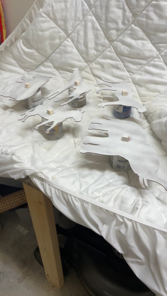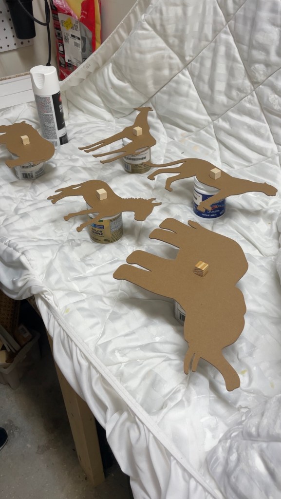 2. Attach wooden blocks to the back of cut outs so that they will be raised slightly off of the walls. Use superglue or your favorite adhesive