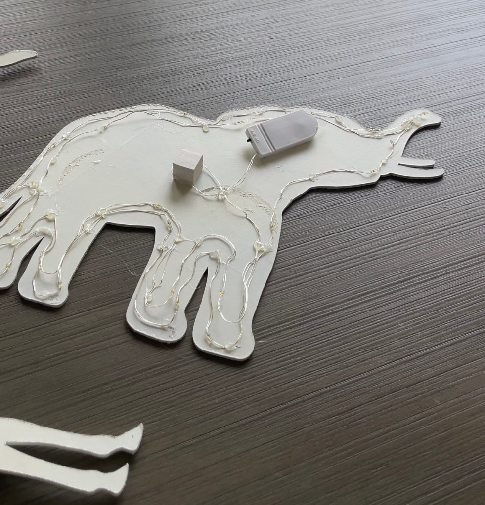 6. Cut velcro strip to size and attach to the wooden blocks on the back of the cut out