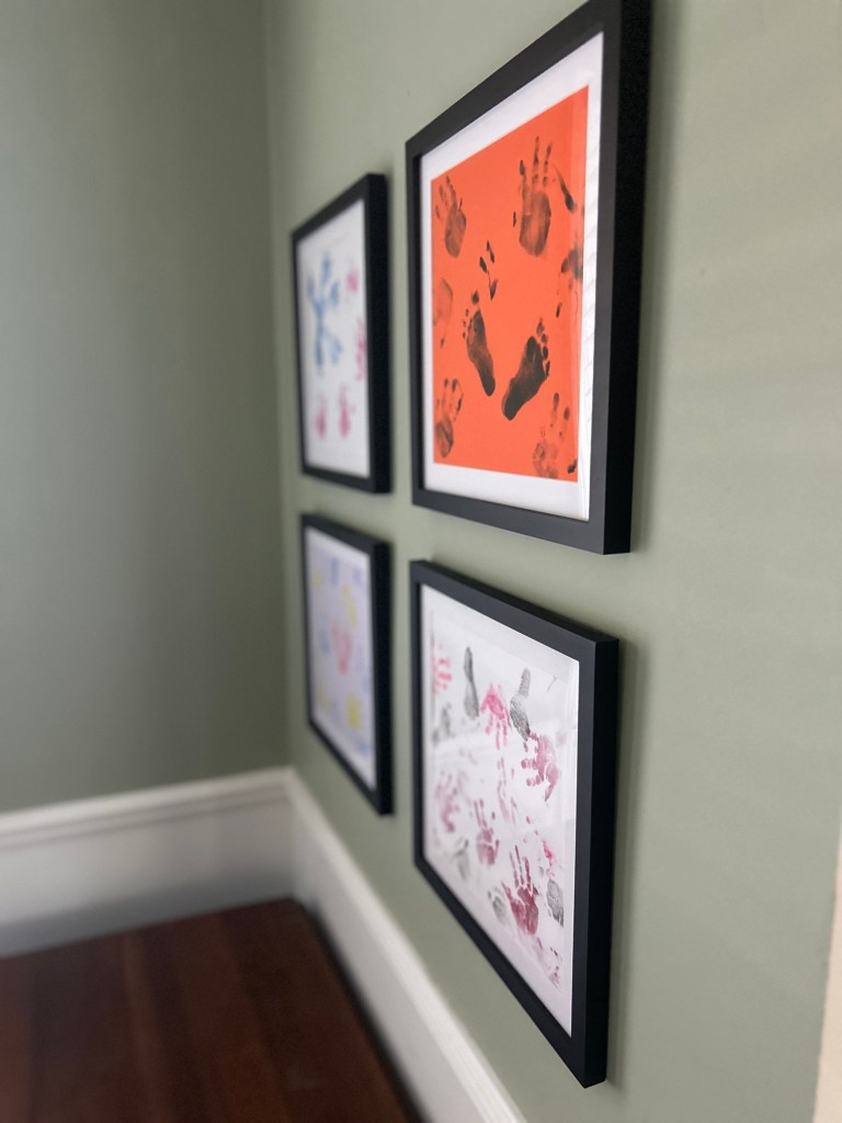 Each holiday I use ink or paint in seasonal colors and capture my little girls hand and feet prints. I plan to do some variation of this every year and build up the collection. So far I have Valentine’s Day, Easter, 4th of July, and Halloween. I’ll do Christmas and then add it to this little gallery wall display in the playroom. I use these frames from Amazon to make it look more polished. I also use these clean touch ink pads so that I don’t have to deal with messy little hands and feet.