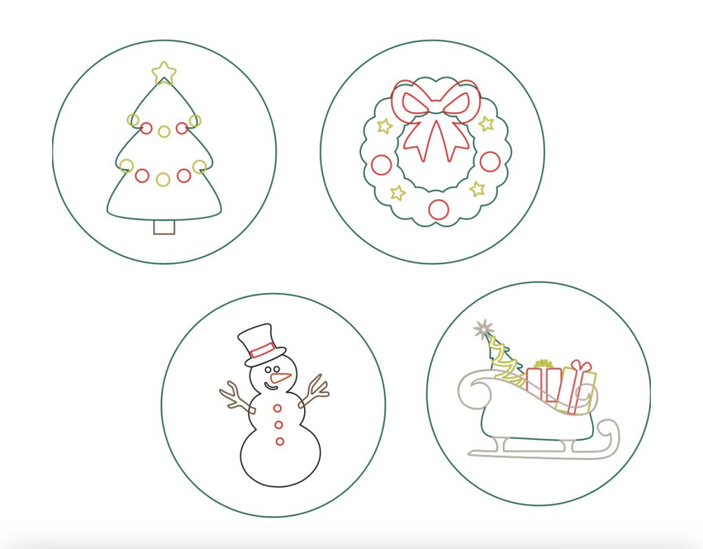 I started off with making circles 2.69 inches in height and width. This will be the size of the ornament. Then I browsed through the images available with my Design Space subscription until I found images that I liked and I thought would easily translate to simple lines for needlepointing. If you want to use my designs their available for free here.