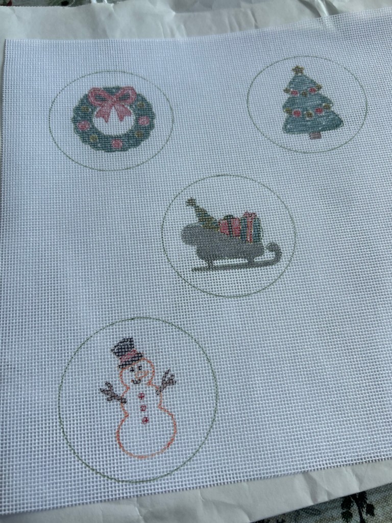 I plan to follow a tutorial from Coco Frank Studio who has several Instagram reels showing how to finish ornaments. You can also always take the finished canvases into a needlepoint store and get them professionally finished but that’s another cost I’d like to save on. Once I finish mine I’ll update this post with more details about how it goes and any tips or tricks I learn along the way.