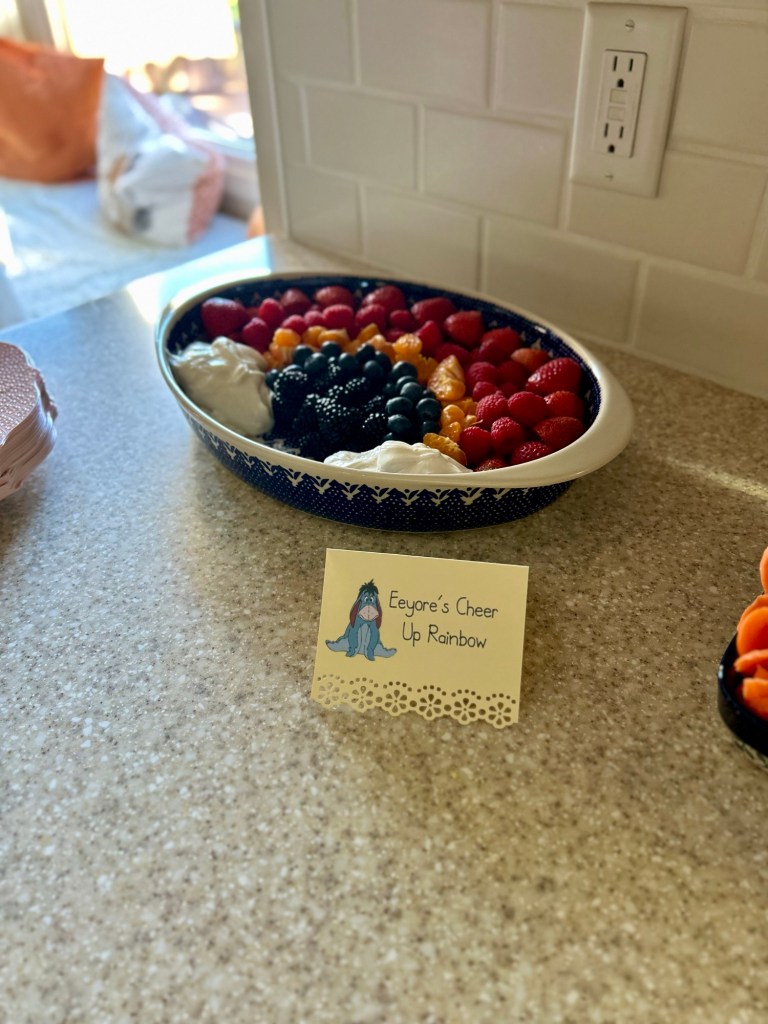 When I throw a party, one of the most important parts to me is the food. It has to taste delicious and also be appropriately on theme. So when it came to preparing the menu for my daughter’s 1st birthday party I knew I wanted to make as many things Winnie the Pooh themed items as possible. I also knew that it was going to be a busy day and I would want to enjoy most of it just celebrating my daughter, so I made sure to keep the food very simple and mostly things that could be prepped the day before.
